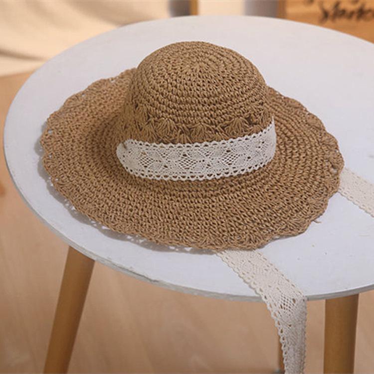 Корейская милая соломенная шляпа с кружевом, маленькая, свежая, в стиле лоли, летняя, для морского отдыха, с большими полями, солнцезащитная, женская M(56-58cm) хаки