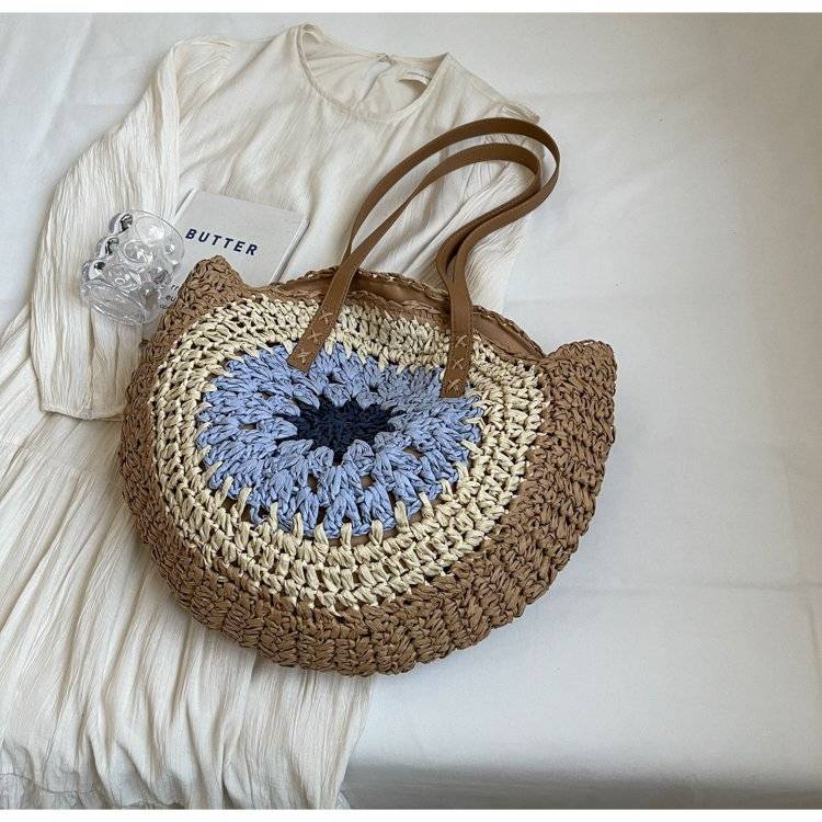 Корейская минималистичная плетеная соломенная сумка ручной работы - Лесной стиль, большая вместимость, плетеная на плечо, кроссбоди, пляжная сумка-тоут синий