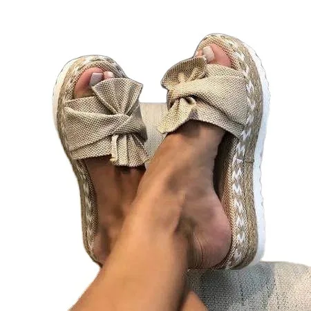 2021 New Summer Bowknot Slippers Wedge Sandals Beach Thick Bottom Large Size Women's