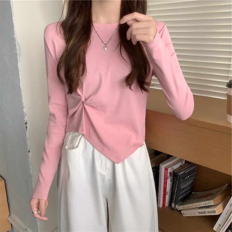 2024 Корейская осенняя шикарная футболка с длинными рукавами для женщин Large розовый