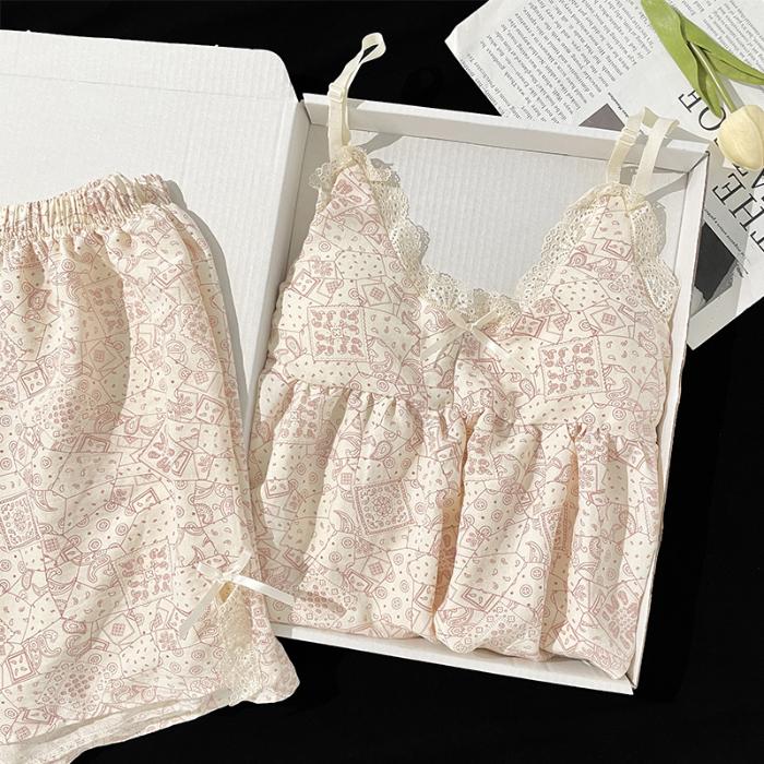 Корейская пижама женская полосатая картина принт подтяжки пижамы комплект короткий рукав топ + шорты домашняя одежда приятная для кожи дышащая M