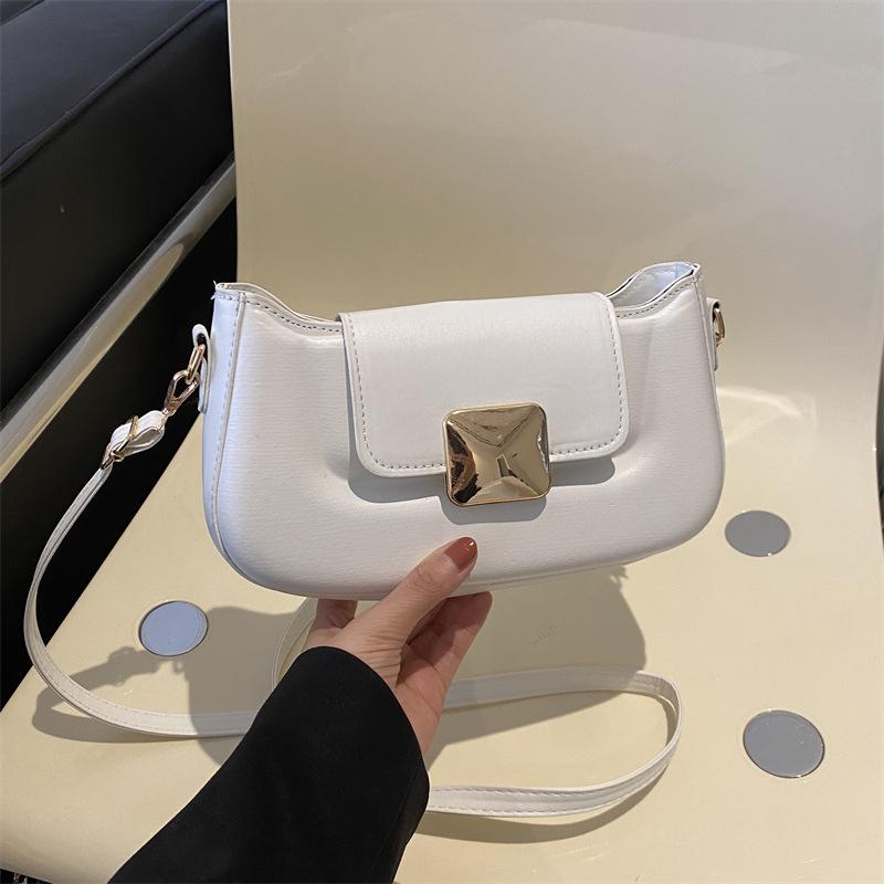 Корейская простая и модная однотонная женская сумка Xiaoxiangfeng, зимняя новая нишевая сумка на одно плечо под мышкой 2024 года белый
