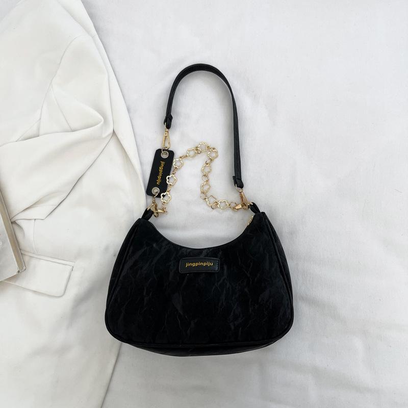 Корейская простая модная сумка-мессенджер с цепочкой, сумка-тоут для поездок на работу, нишевая сумка под мышкой, женская простая модная сумка через плечо для женщин чёрный