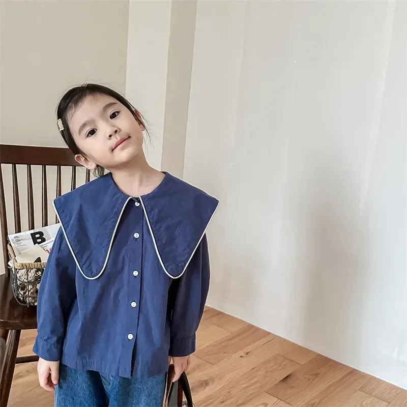 Корейская рубашка-поло с большим воротником из моющегося хлопка Детская рубашка 2023 детская весенняя одежда новая весенняя коллекция для девочек