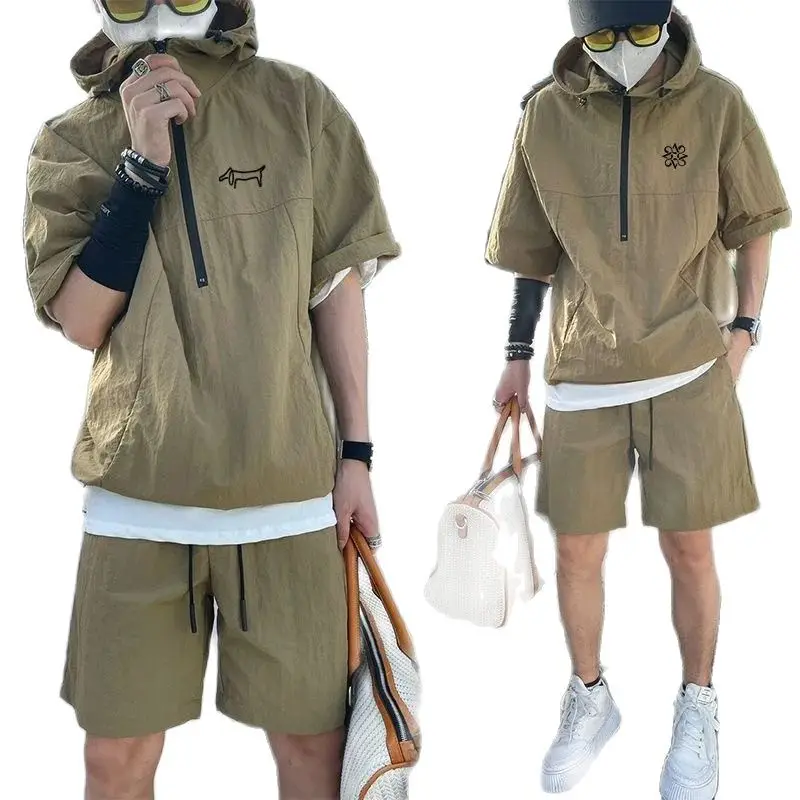 Корейские костюмы для гольфа 명, Мужская одежда для гольфа, Новинка лета 2024, комплект из двух предметов, Мужская одежда для гольфа, Быстросохнущий Спортивный короткий топ с капюшоном, 골용용용