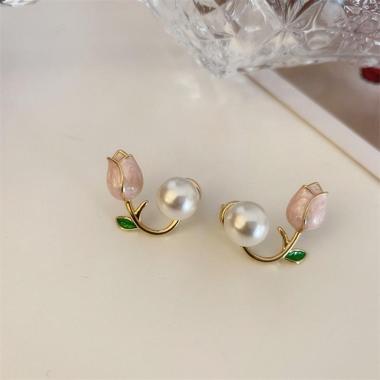 Корейские простые милые серьги-гвоздики с жемчугом и цветком тюльпана для женщин, новые Pendientes