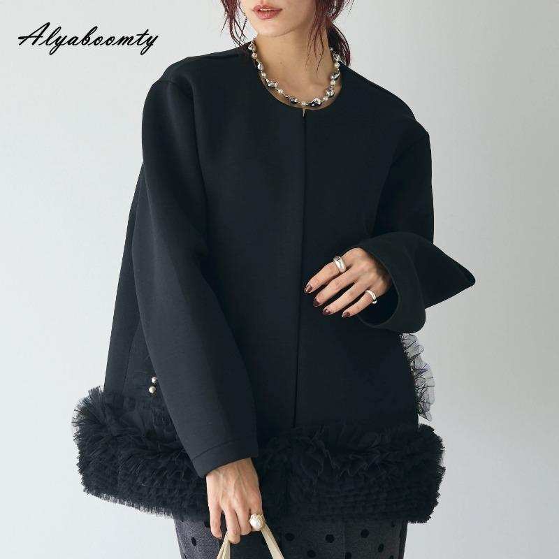 Корейский Ульззанг Осень Зима Женское Стильное Черное Пальто Круглый Вырез Повседневное Свободное Базовое Большого Размера Куртка Женственная Элегантная Женская Верхняя Одежда One Size чёрный
