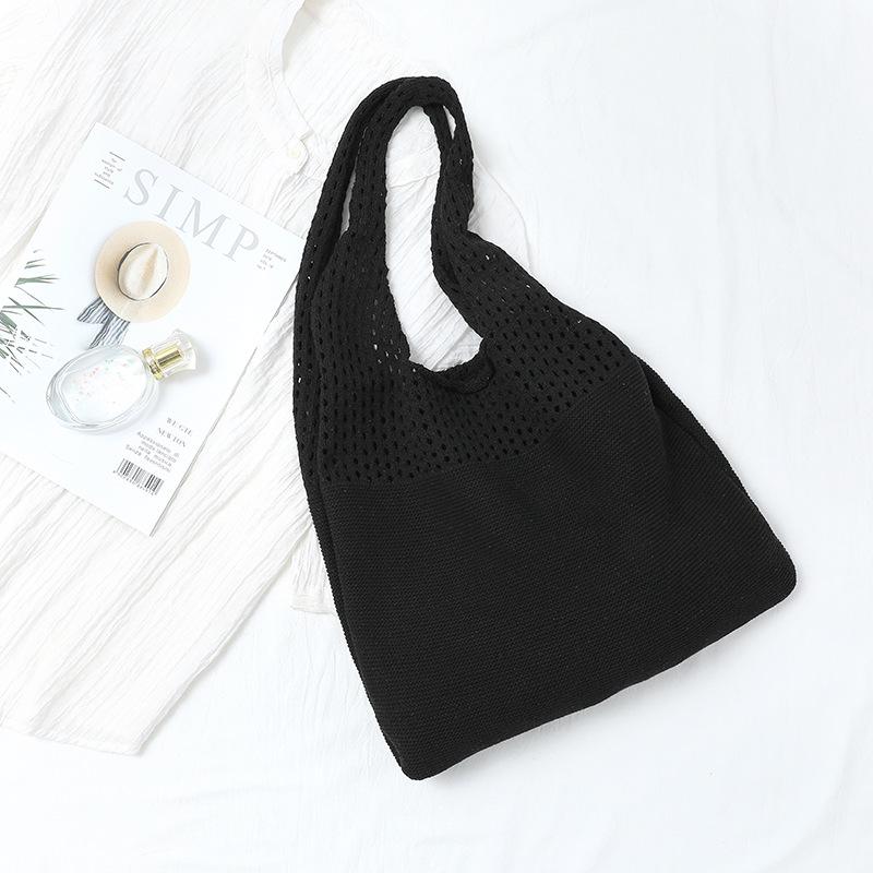Корейский Шик Ретро Ажурная Вязаная Сумка-Тоут на Плечо, Женская Универсальная Сумка-Жилет из Пряжи