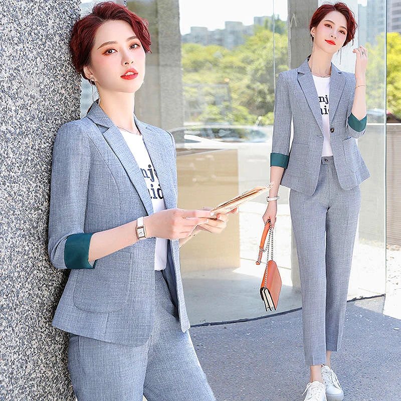 Корейский офисный женский костюм, повседневная женская одежда, шикарный Тонкий Блейзер, Женские топы и брюки, женская одежда на весну и лето...