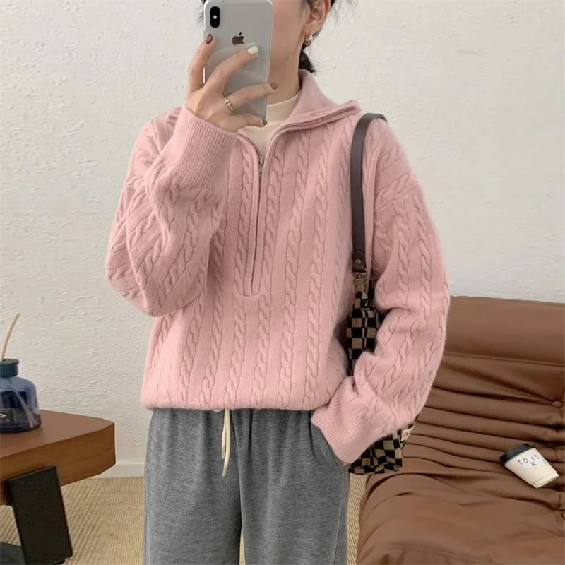 Корейский пуловер на молнии свитер женский новый осенне-зимний стиль свободное и универсальное пальто