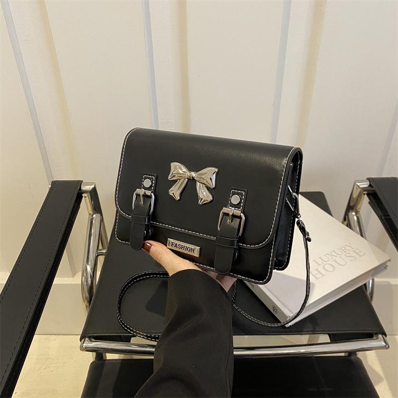 Корейский стиль Модная контрастная сумка почтальона Женская новая стильная маленькая квадратная сумка с бантом Универсальная сумка через плечо на одно плечо