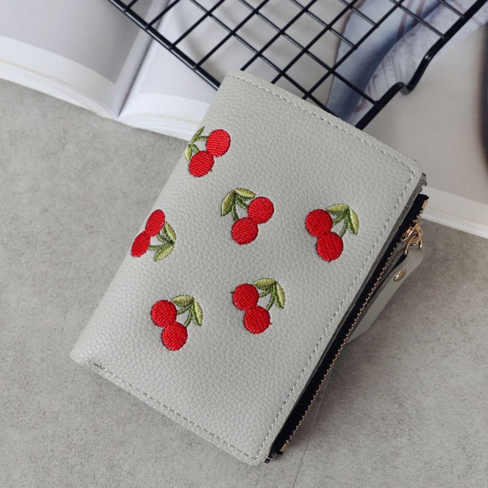 Корейский стиль Ретро Вишневые кошельки ПУ кожа Молния Сумка для мелочи Инс Короткий клатч Женский зелёный