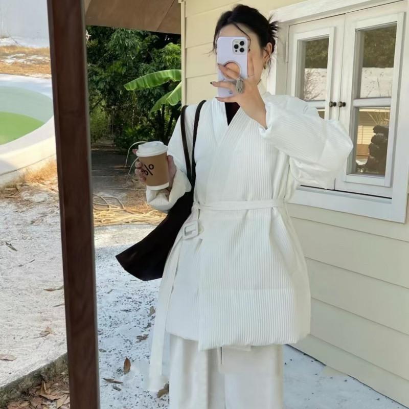Корейский стиль V-образный вырез с поясом пуховик для женщин осень и зима новый стиль XL