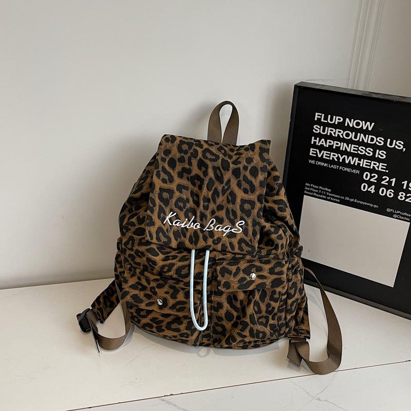 Корейский холщовый рюкзак с леопардовым принтом: Женская сумка для поездок на работу и учебы, большой вместимости, стиль 2025 Lazy коричневый