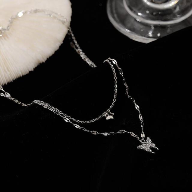Корейское новое милое ожерелье с двойной цепочкой для женщин и девочек, модные женские украшения для вечеринок, модное женское ожерелье с бабочкой