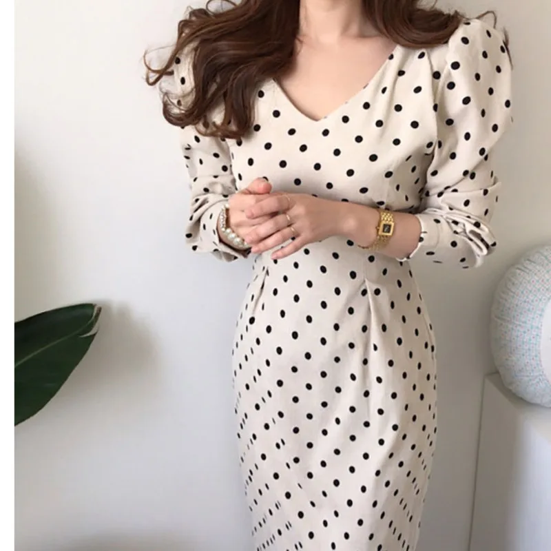 Корейское платье с длинным рукавом и V-образным вырезом, шикарное волнистое платье с запахом на бедрах, снижение талии и возраста