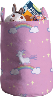 Мягкая и достаточно прочная корзина для хранения игрушек как нельзя лучше соответствует поставленной задаче. Она удобна для переноски, и ее содержимое можно быстро извлечь благодаря наличию у основания мягкой тканевой крышки на фиксирующем шнурке. Цветные детские принты, которыми украшена эта объемная корзина для игрушек, позволяют ей органично вписаться в комнату детей, и стать красивым и полезным элементом ее оснащения и декора.