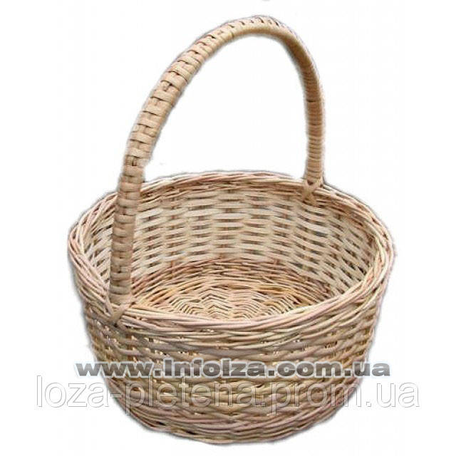 Корзина сделанная из лозы высшего качества.Выполнена в натуральном цвете.Диаметр корзинки-36см,высота корзинки-13см,высота вместе с ручкой-36см.