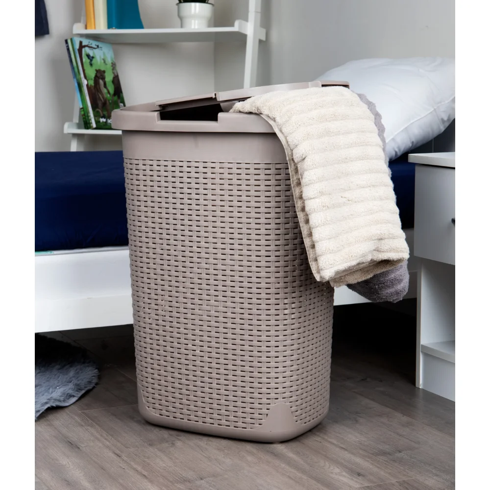Корзина для белья объемом 60 литров с ручками и крышкой, коричневого цвета металлик, 10,10X14,25X24,00 дюйма