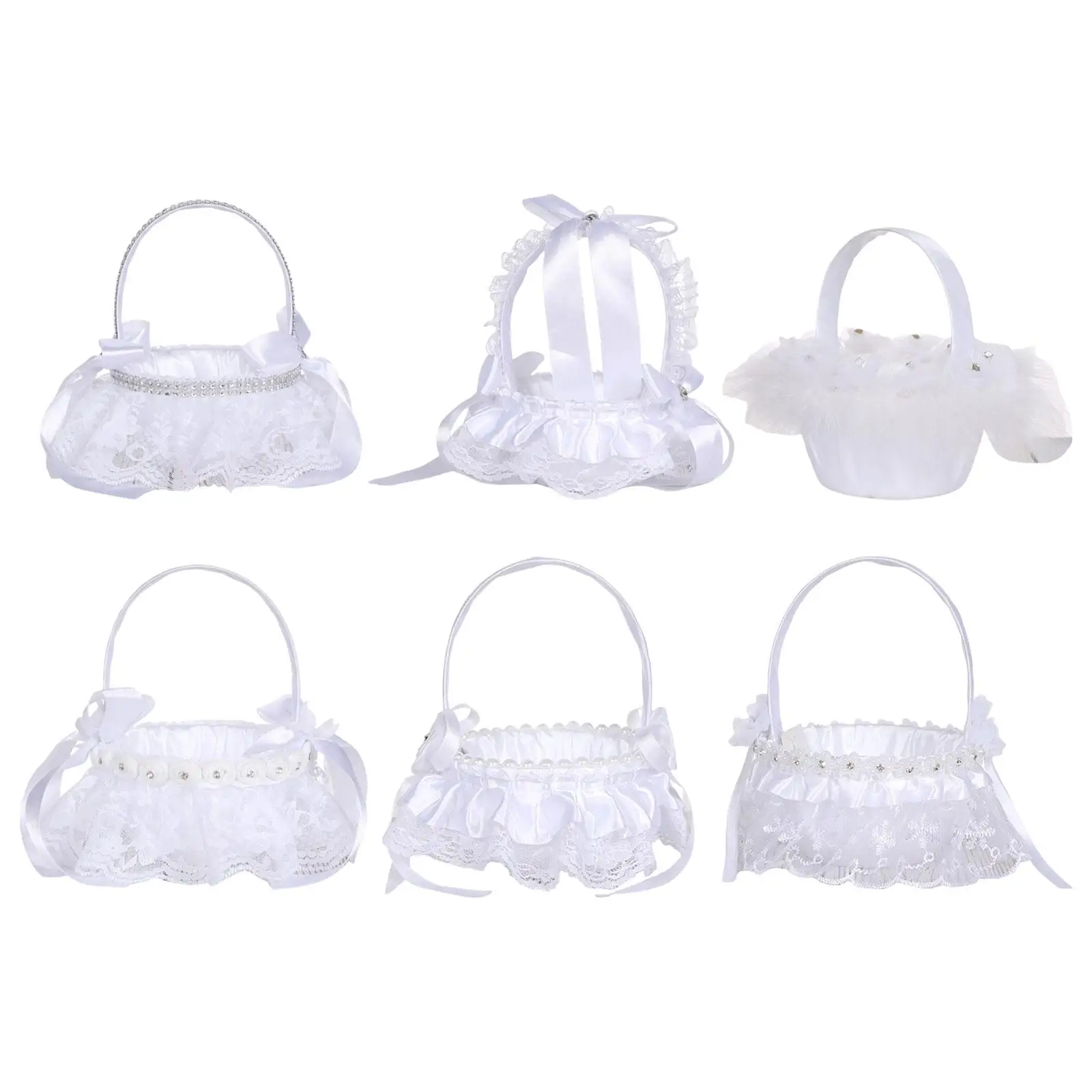 Корзина для подружки невесты, кружевная белая корзина для девочек с цветами, атласная корзина для цветов, корзина для свадебной вечеринки, д...
