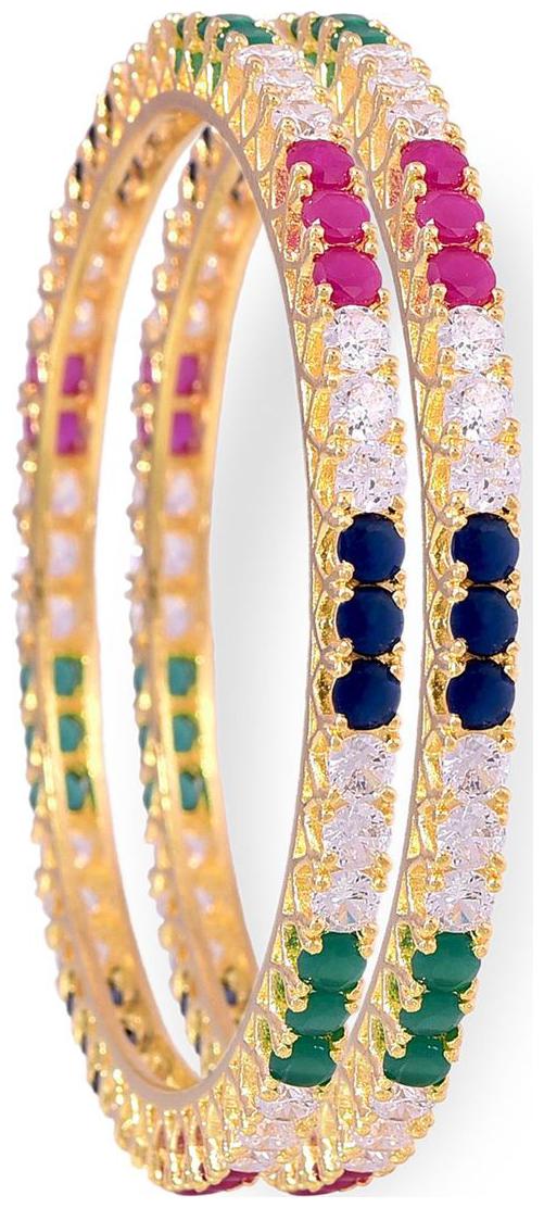 Ratnavali jewels American Diamond Gold Plated Traditional Bangle CZ Bangle Set Red Ruby Green Emerald Blue Sapphire Multi Color Bangles Set for Women RV1107