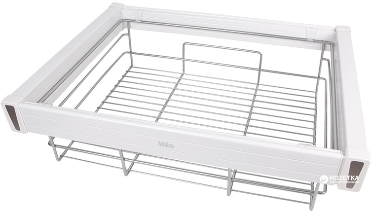 Корзина центральная Muller выполнена из хромированной стали. Выдвигается и задвигается обратно плавно и бесшумно, благодаря направляющим скрытого монтажа с доводчиком. При монтаже возможна регулировка по ширине на 100 мм. Максимальный вес, который может выдержать конструкция, 30 кг.