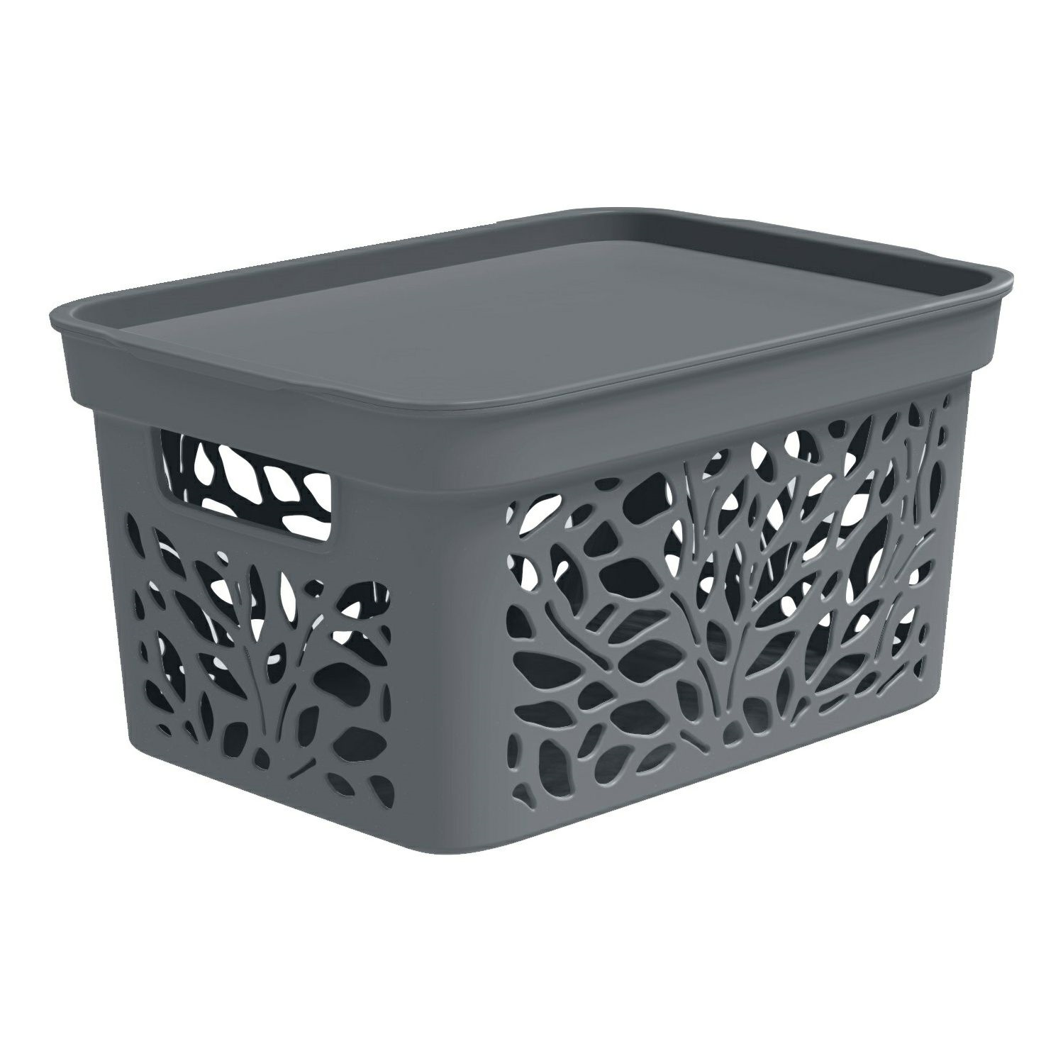 Корзина 4 Family Leaves с крышкой 405 х 275 х 207 мм 18 л серая