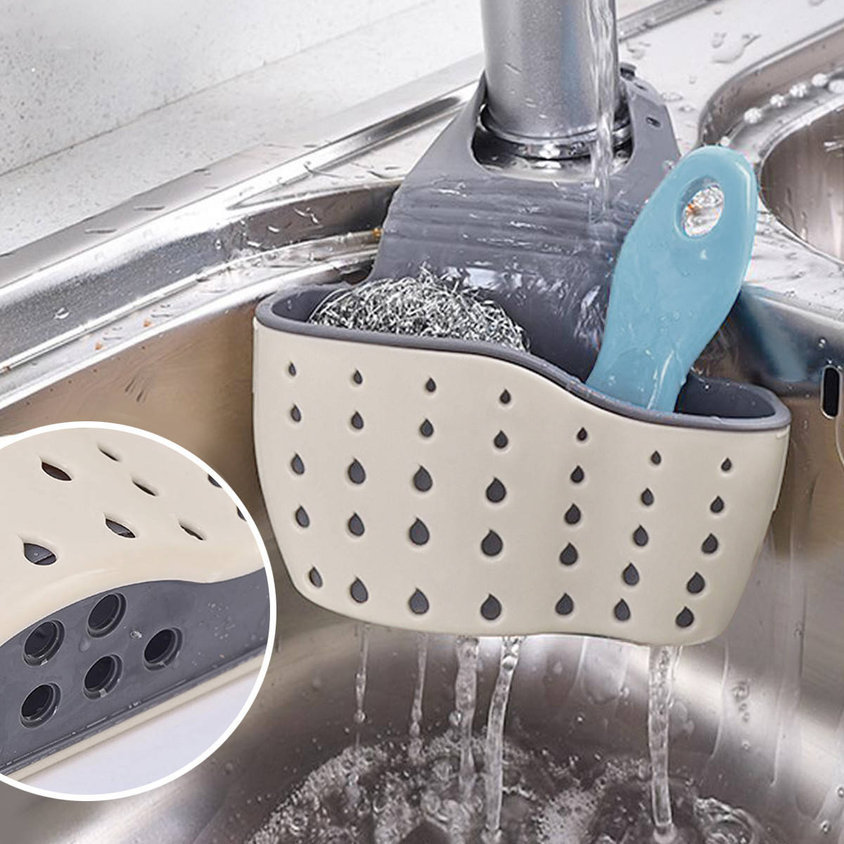 Корзинки можно вішати на змішувачи або гачки.