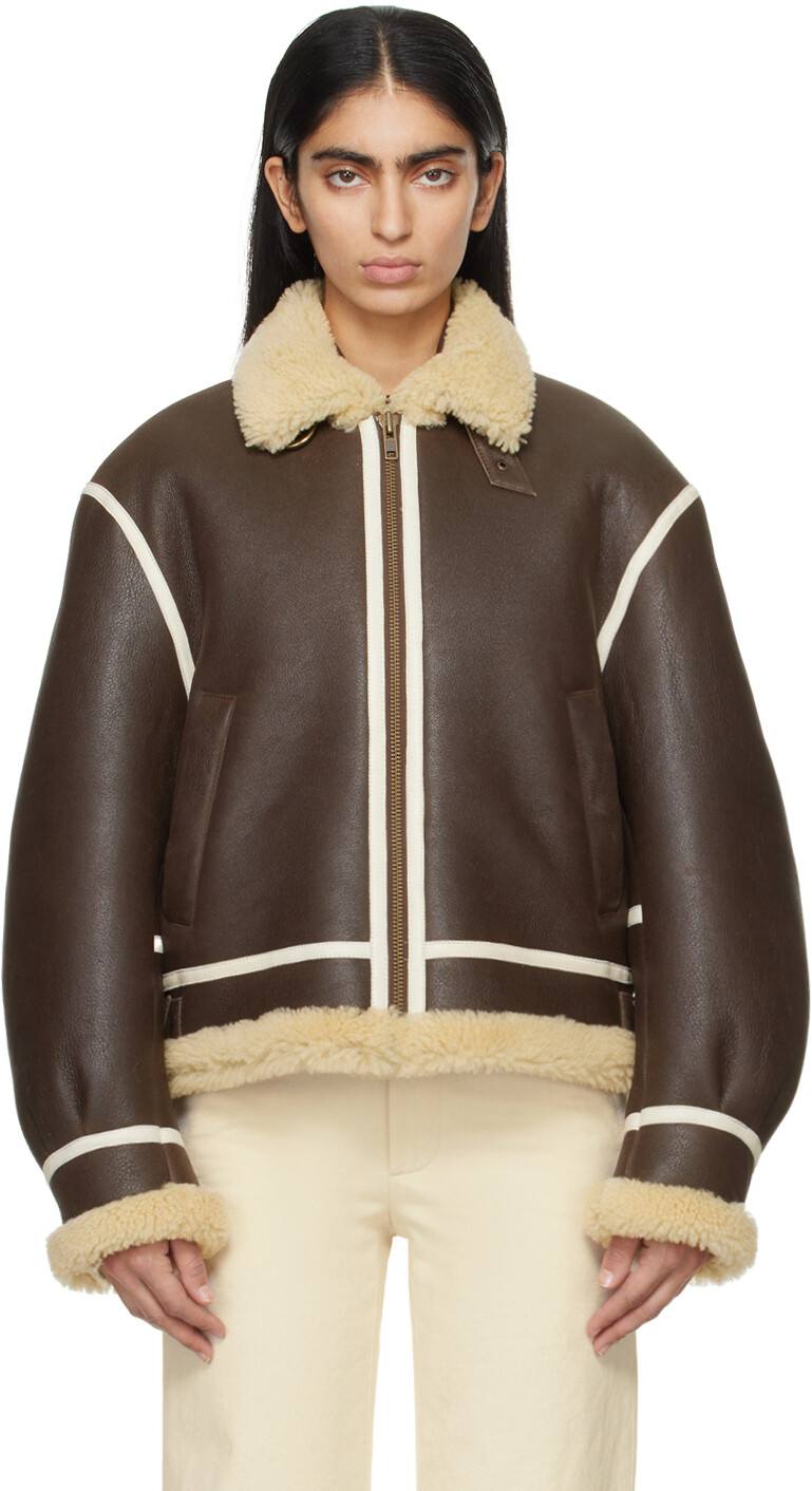 Коричневая короткая дубленка-авиатор Bode