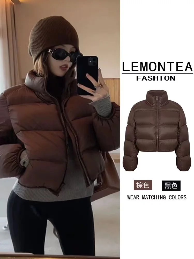 Коричневое короткое хлопковое пальто, Женское пальто на осень и зиму, новый стиль кендоу, уникальное и уникальное утепленное пальто