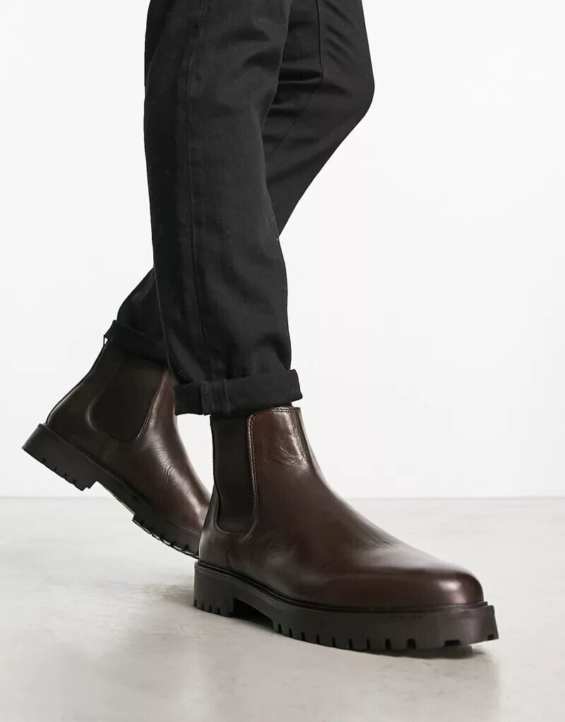 Коричневые кожаные массивные ботинки челси Walk London Sean, Черный, Коричневые кожаные массивные ботинки челси Walk London Sean