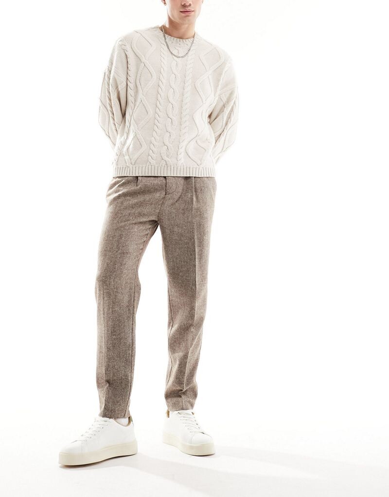 Коричневые твидовые зауженные брюки из смесовой шерсти ASOS DESIGN Wedding