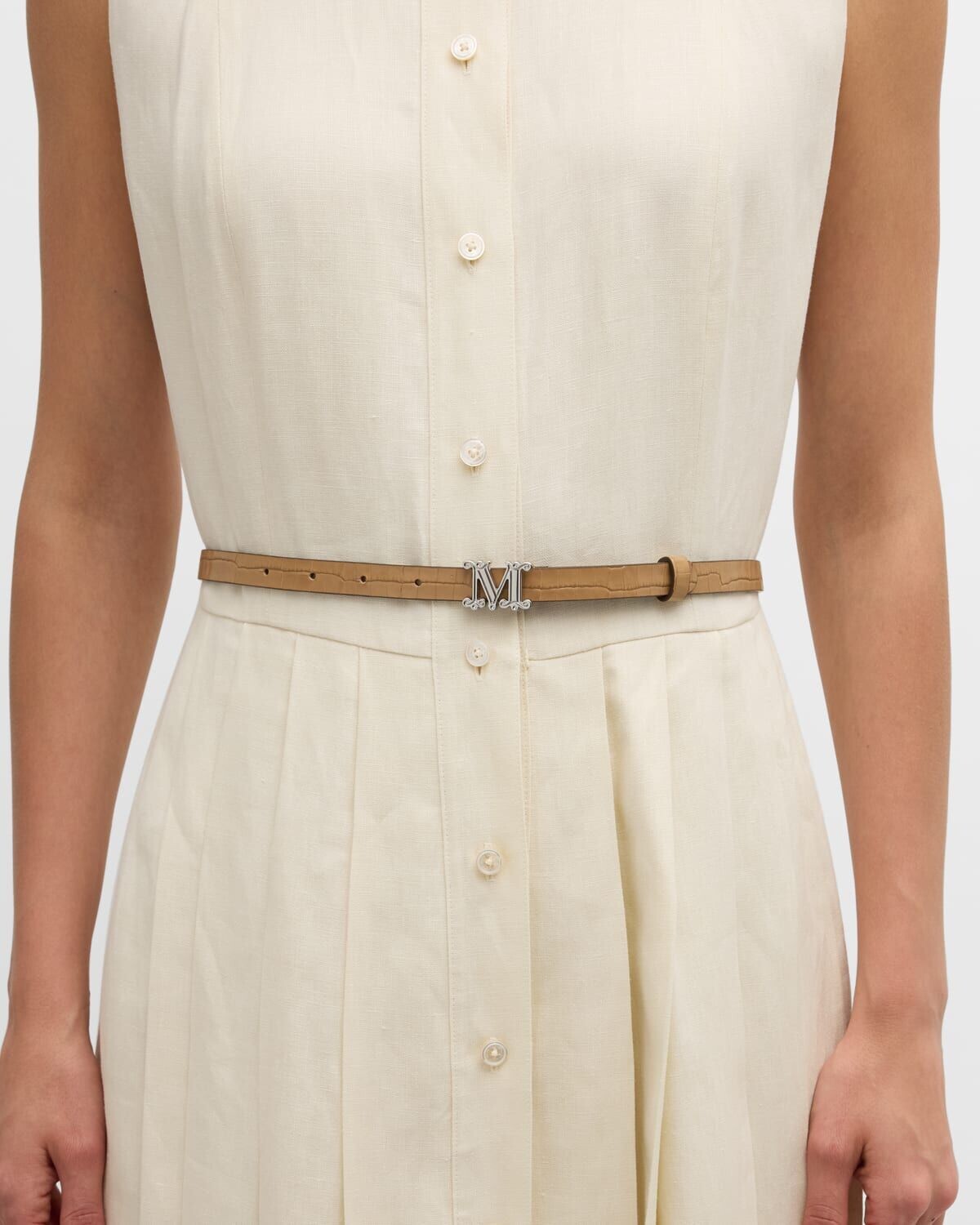 Коричневый кожаный узкий ремень с тиснением под крокодила Max Mara, цвет Camel