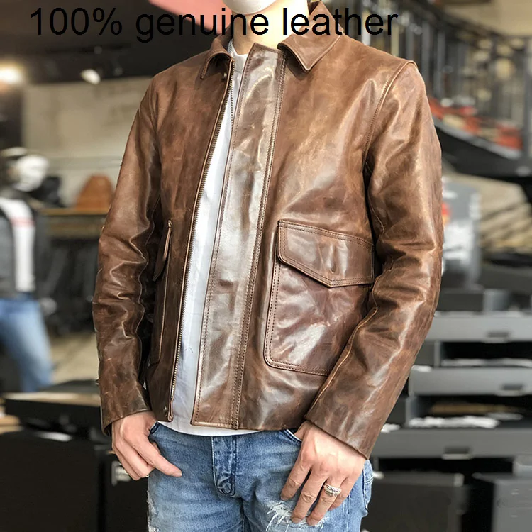 Коричневый пиджак batik 2023 из конской шкуры, Повседневная стильная одежда, мужское винтажное пальто из натуральной кожи, высокое качество
