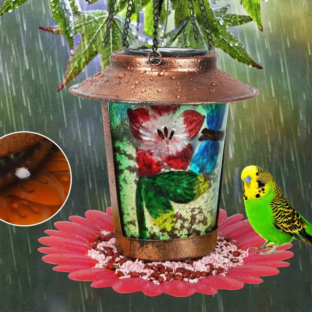 Кормушка для птиц на солнечной батарее, стеклянная, со стрекозой, защита от погодных условий, украшение для автокормления, сада