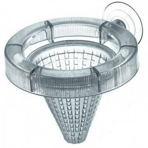 Из данной кормушки акваобитателей можно кормить сухим и живым кормами. Для этого имеется перфорированный конус. Он не позволяет живому корму опуститься на дно или расплыться по всему аквариуму. Конус стабильно находится в воде. Снижение водного уровня в аквариуме не влияет на качество кормления.