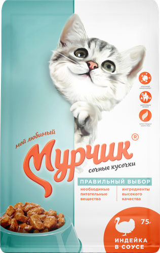 Корм для кошек Мурчик с индейкой в соусе, 75 г
