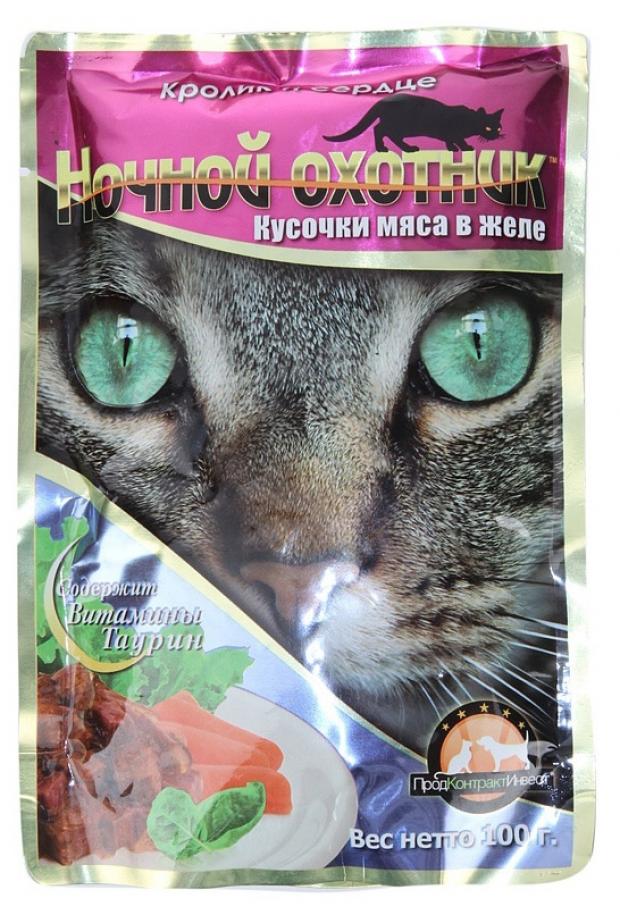 Корм для кошек «Ночной охотник» кролик и сердечки в желе, 100 г