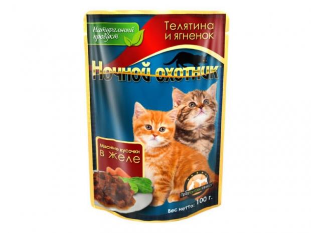 Корм для кошек «Ночной охотник» телятина и ягнёнок мясные кусочки в желе, 100 г
