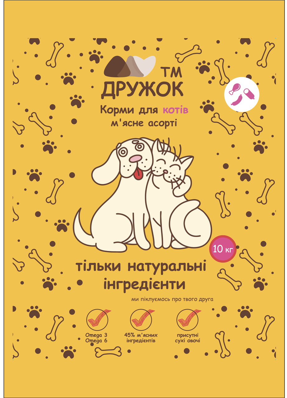 Корм преміум класу для котів ТМ Дружок М’ясне Асорті (10кг)