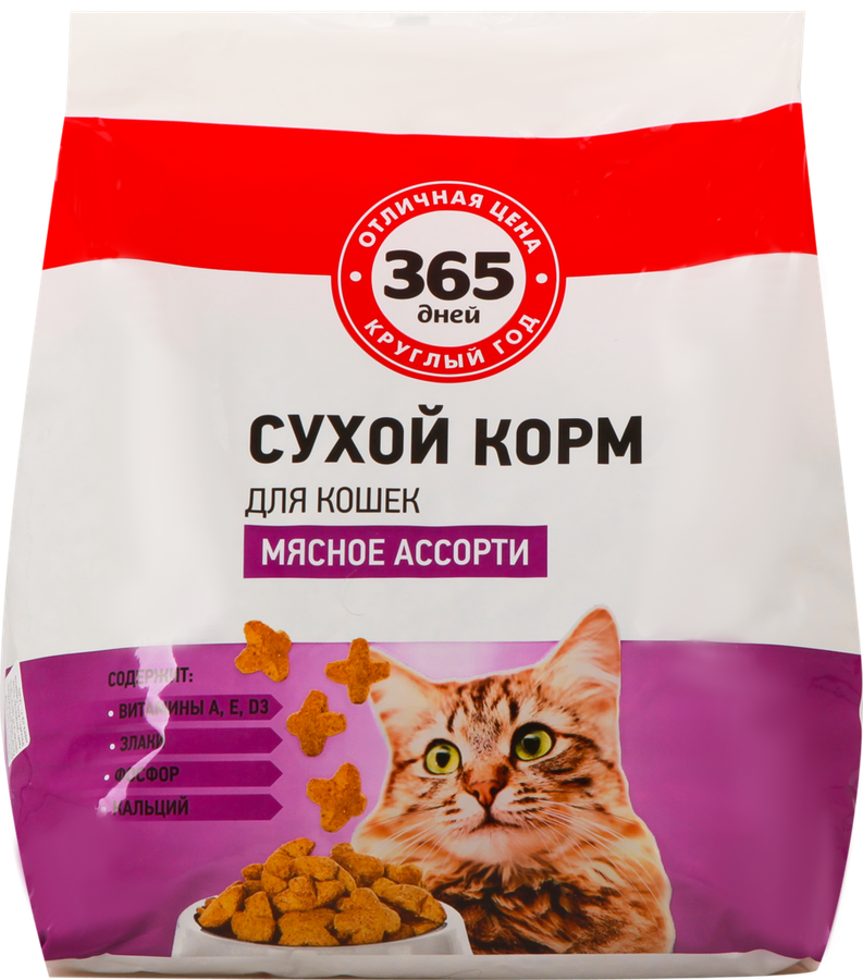 Корм сухой для кошек 365 Дней Мясное ассорти