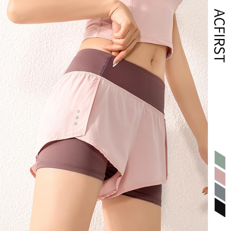 AcFirst New Women Gym Double Side Pocket Running Shorts Breathable Quick Dry Summer Short Workout High Waist Fitness Sportwear1, Black