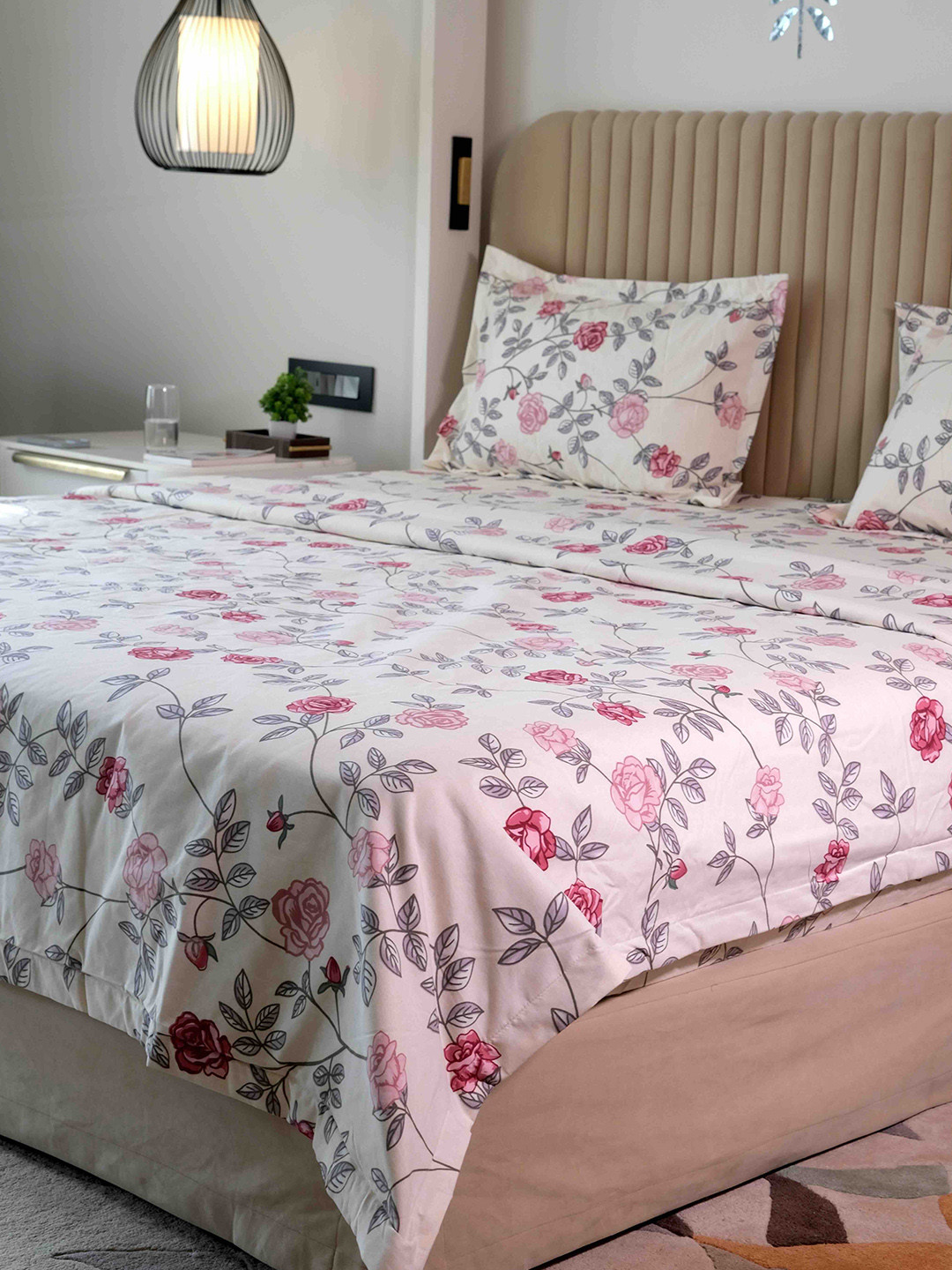 Pure Decor Bedding of 4 Pieces Bedsheet Set 2.28m X 2.54m With Comforter 2.21m X 2.46m, White