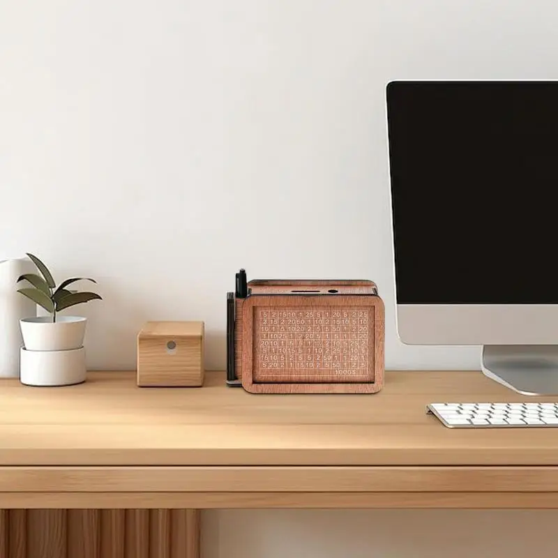 Коробка для хранения денег, деревянная коробка для хранения наличных денег, счетчик купюр, коробка для сбережений с держателем для ручек, многоразовый счетчик купюр для
