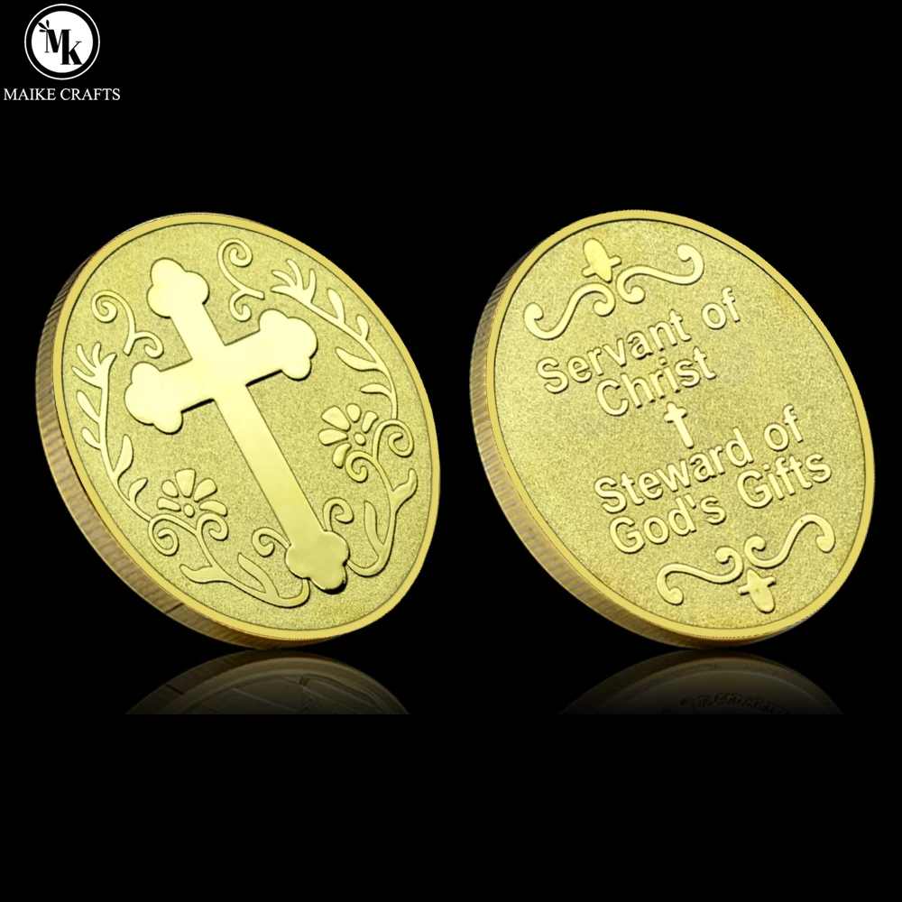 Servant of Christ Challenge Coin Metal Gold Plated Steward of God's Gifts Cross Commemorative Medal Ornaments Collection Gift
