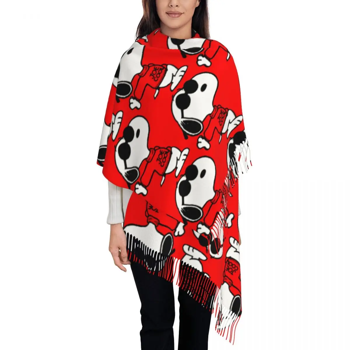 Крутой шарф с героями мультфильмов S-snoopys Animatd на заказ для женщин, длинные зимние теплые шаль с кисточками, шарфы унисекс