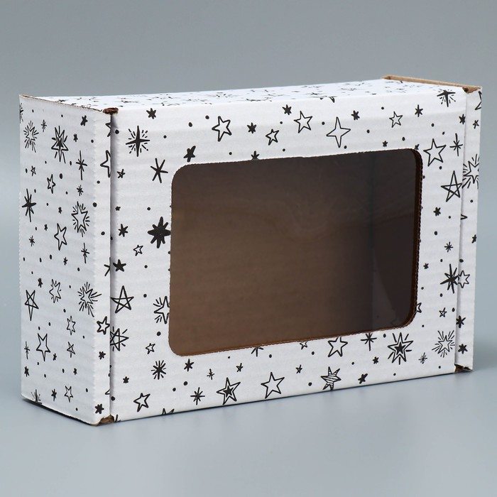 Коробка подарочная сборная с окном, упаковка, «Звезды», белый ,24х8х16 см