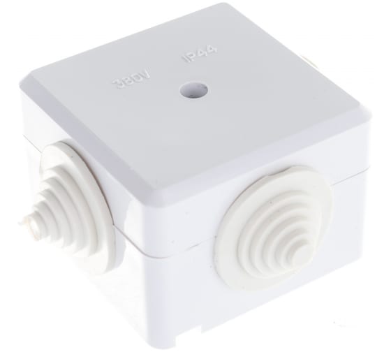 Коробка распределительная квадратная 6 см x 6 см, глубина 4.2 см, наружный монтаж, IP44, вводов:4, наличие сальников, белый, с крышкой, клеммная колодка, Кунцево-Электро КОА-002 (5955), КОА-002