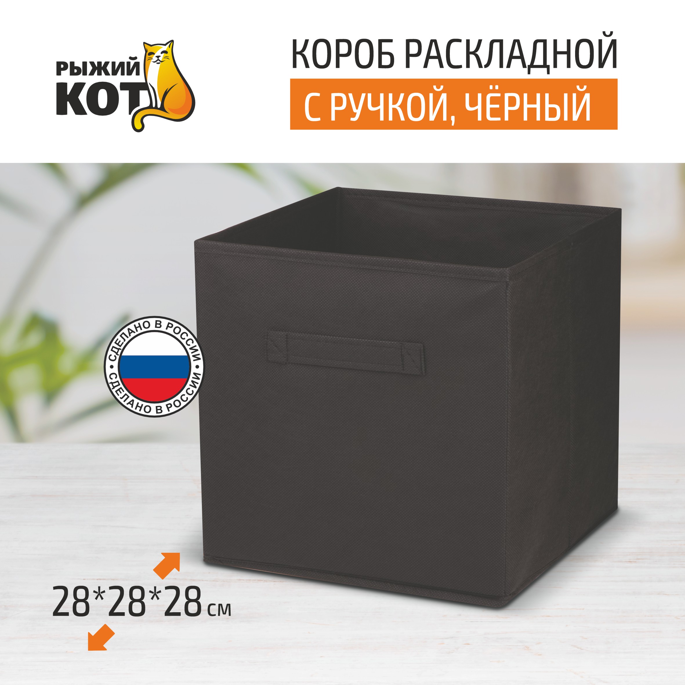Короб раскладной с ручкой Рыжий кот 28х28х28 см 312626 черный
