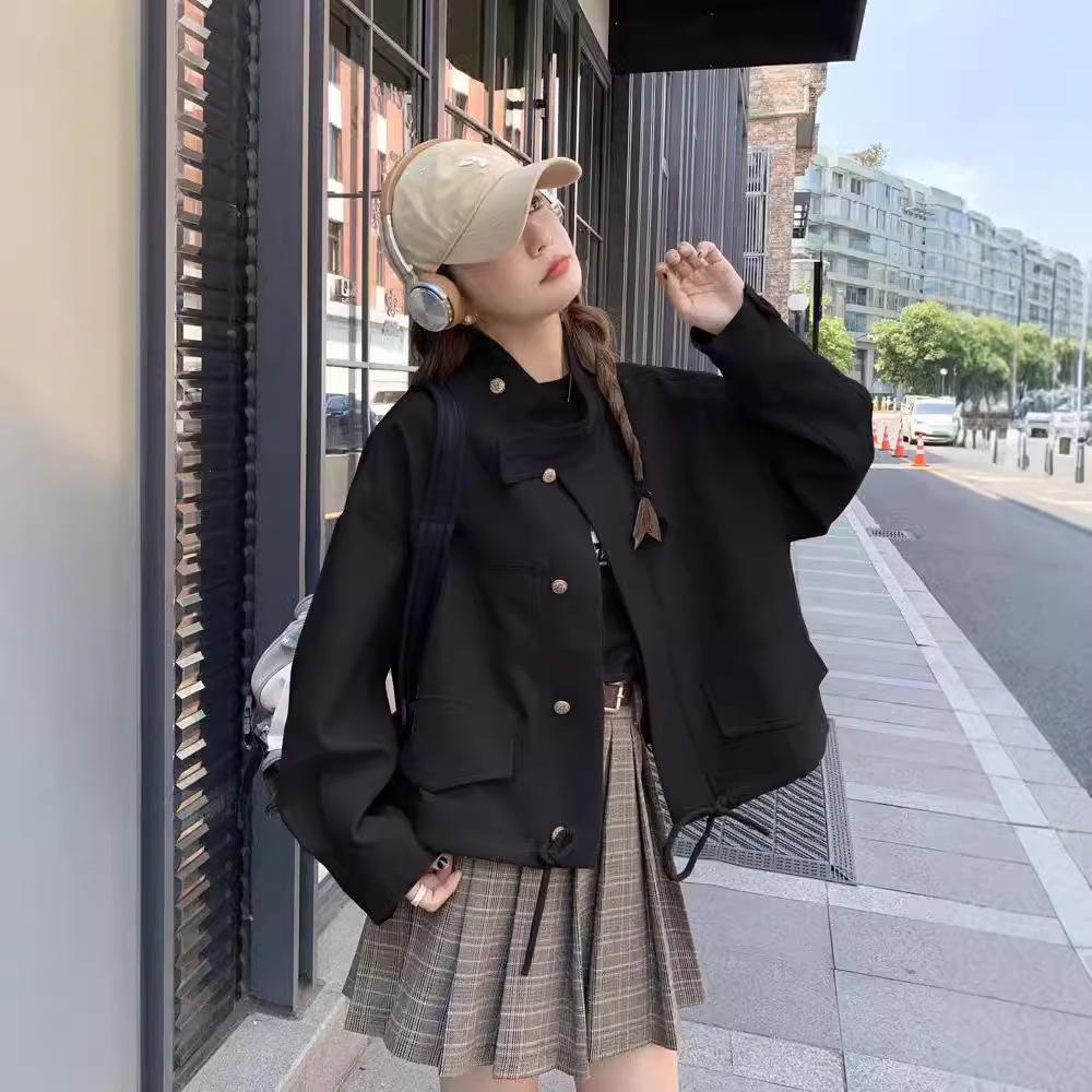 Короткая куртка-ветровка для женщин на осень и зиму, новый стиль, американская ретро-куртка цвета хаки, воротник-стойка, рабочая куртка для женщин, зимняя XL